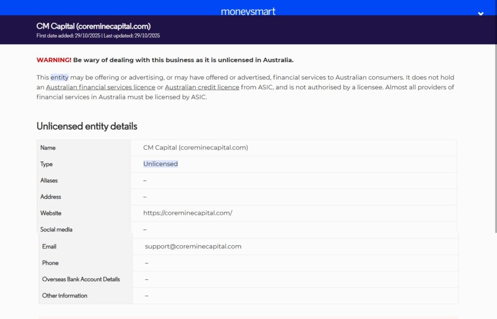 Q: Is CoreMineCapital a licensed or regulated broker?