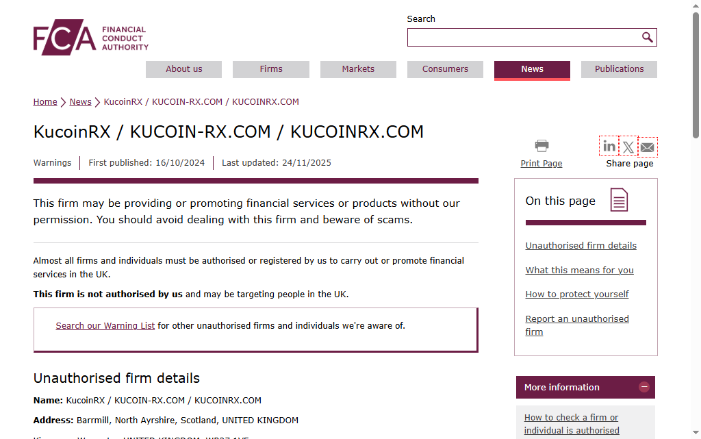 Because this regulatory oversight is missing, many experts view KucoinRX as high-risk. This review examines whether KucoinRX broker is legitimate or potentially fraudulent, reviews its regulatory standing, highlights common scam tactics, and explains what you should do if you have already invested and are facing problems.